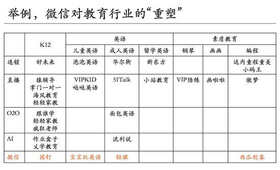 AI带来一波流利说和作业盒子这样的机会;在微信上,有没有一些教育的场景可以重塑?比如园钉利用微信重塑家校通这个场景。