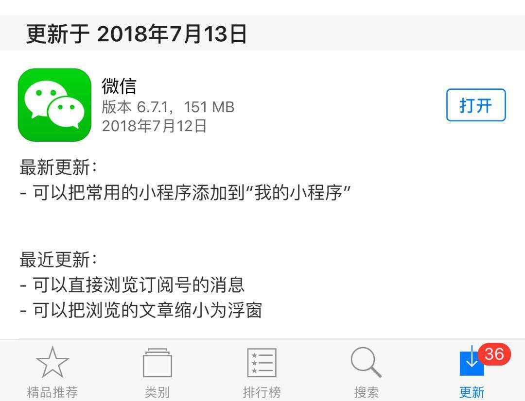 今日上午,微信iOS更新至6.7.1版本。前天刚在微信公开课上提及的“我的小程序”,已经在线上版本实现。